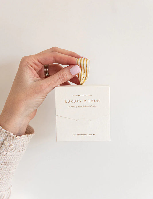 10Mグログランリボン | 箱付き | ホワイト&ゴールド箔押し