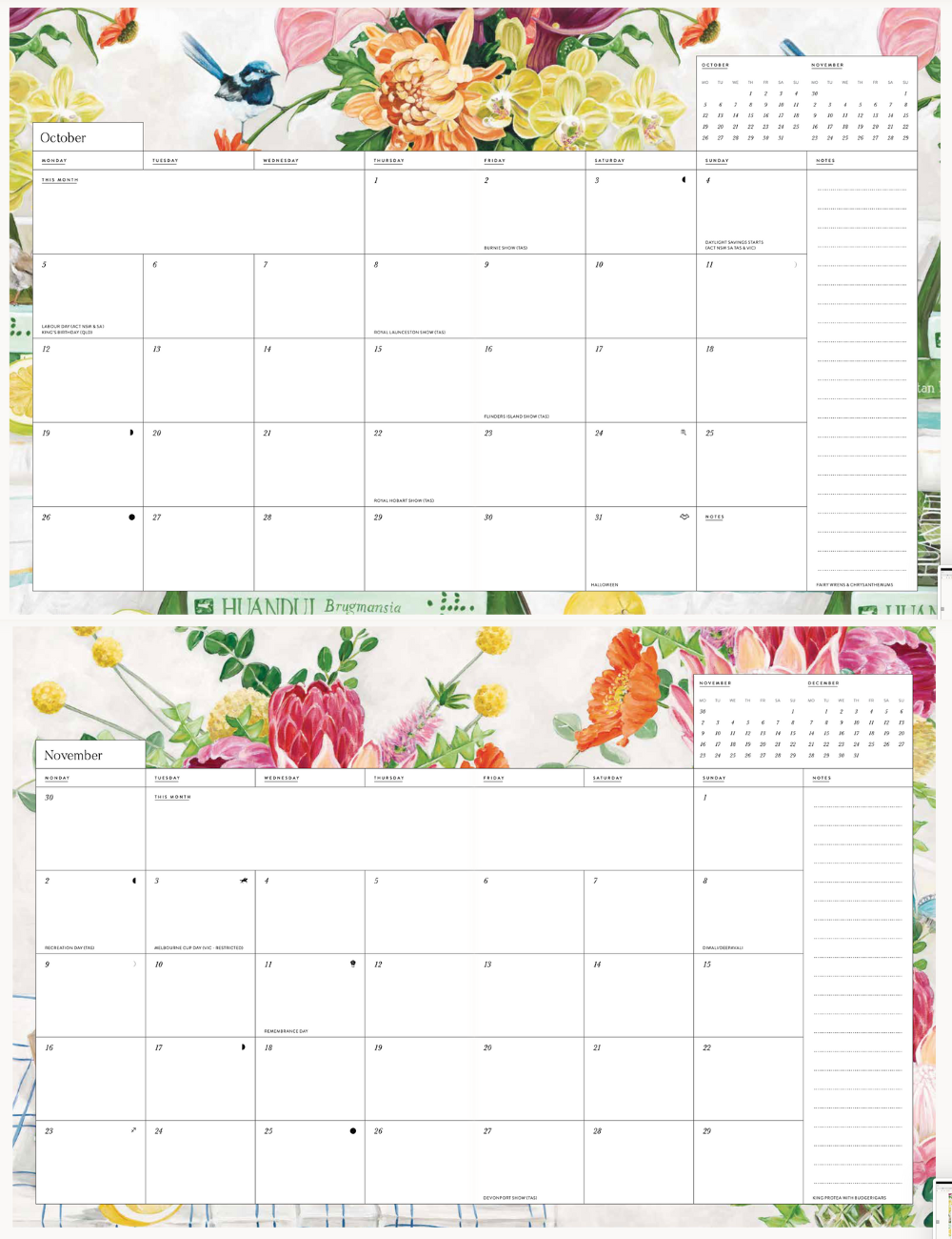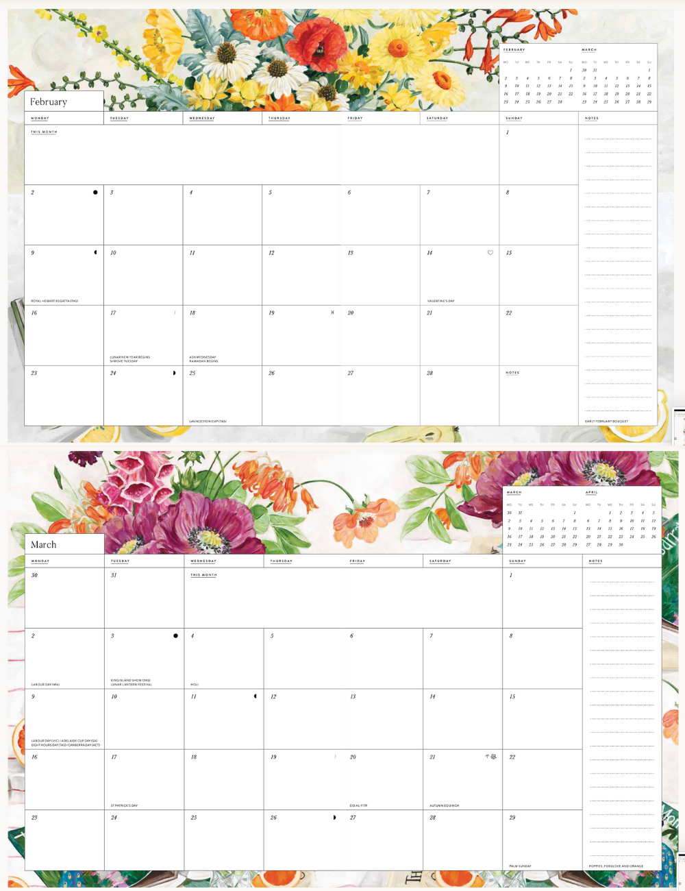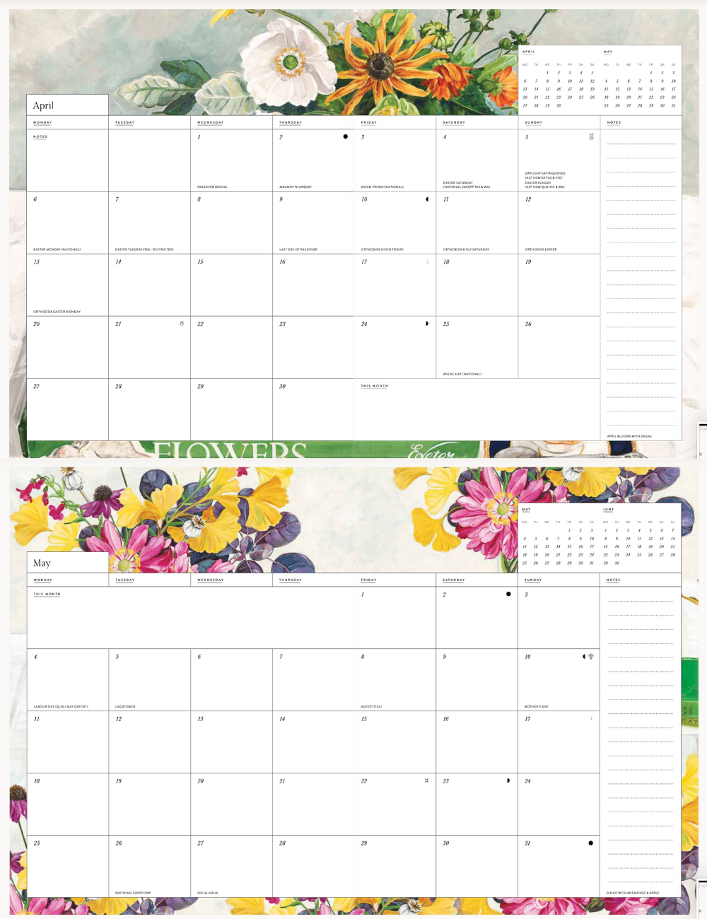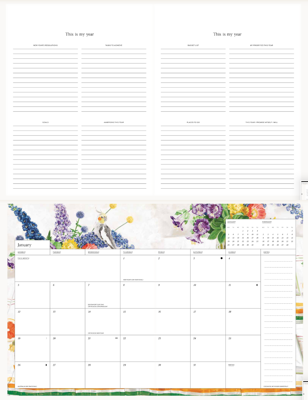 毎月開くたびに気分が晴れやかになる、植物アートが彩られた厚紙のソフトカバー手帳💐