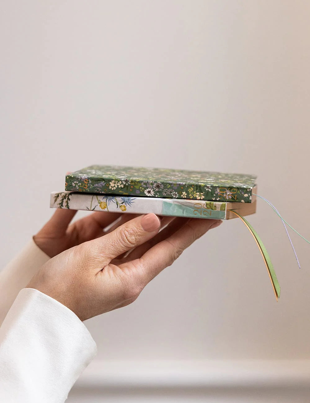 かわいい小花が彩られた厚紙のソフトカバーに、輝く小口ゴールドが美しい1冊🌿