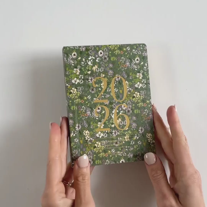 2026年ミニ手帳 | グリーンの小さな花柄 | A6サイズ