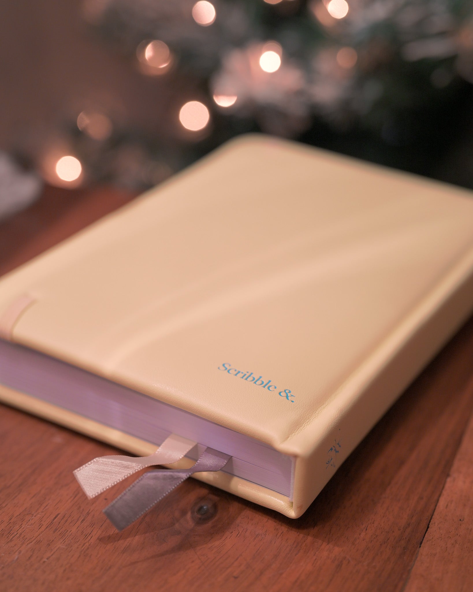 ・ノートの素材:クッション性のあるぷっくりとしたレザー調ハードカバー( ペールイエロー色)