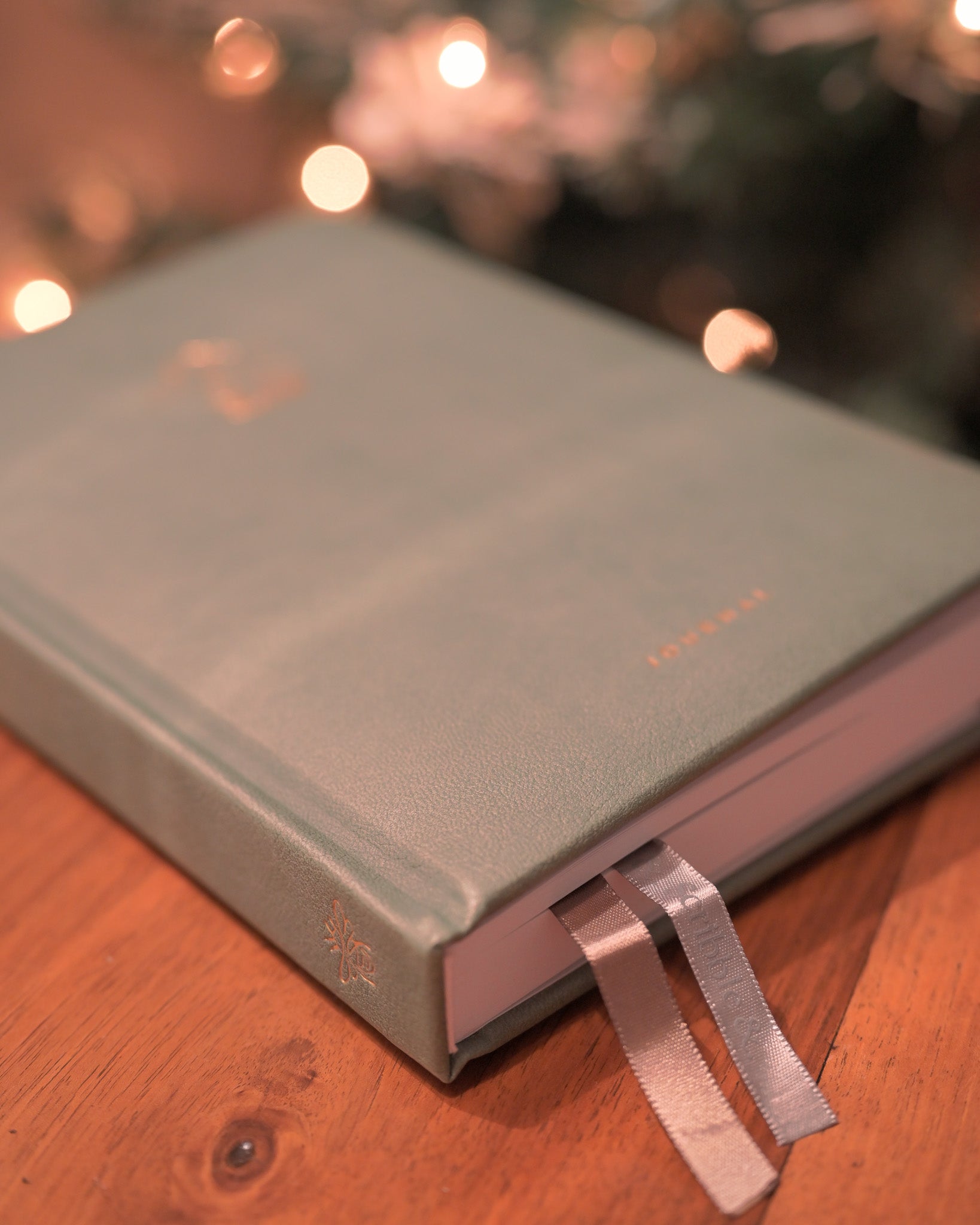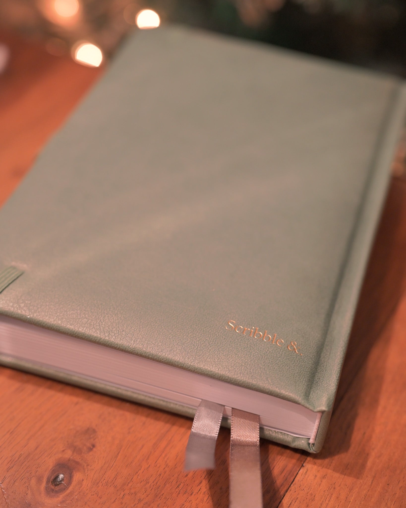 ・ノートの素材:クッション性のあるシボありレザー調ハードカバー( くすみグリーン色 )